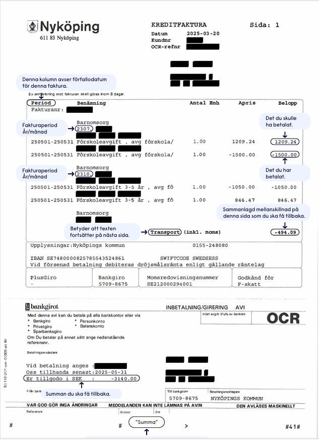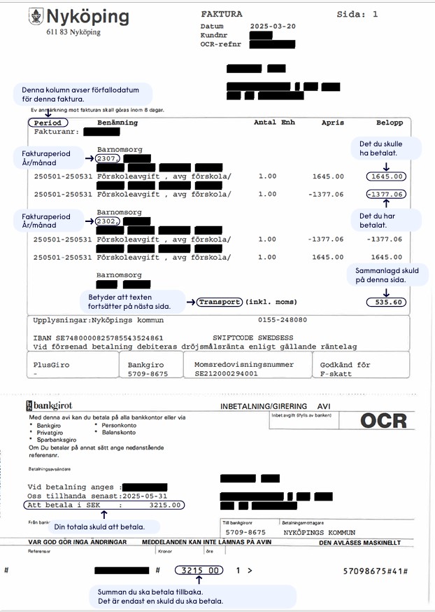 Faktura: Det betyder siffrorna på din faktura när du ska betala tillbaka - klicka på bilden nedan: