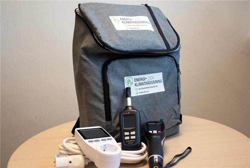 I energiväskan finns verktyg som hjälper dig att mäta el-användningen på dina apparater, mäta temperatur och luftfuktighet inomhus, upptäcka luft- och värmeläckage och hitta drag vid fönster och dörrar.