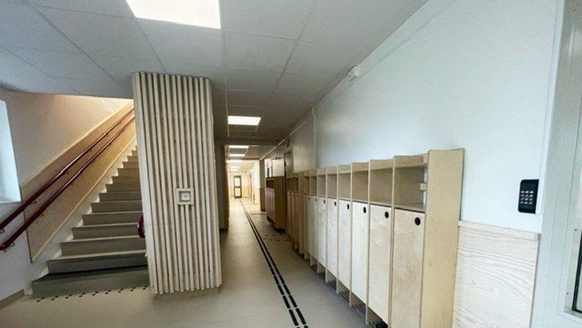 Varje klass har tillgång till två klassrum och ett grupprum. Det skapar goda förutsättningar för flexibel undervisning.
