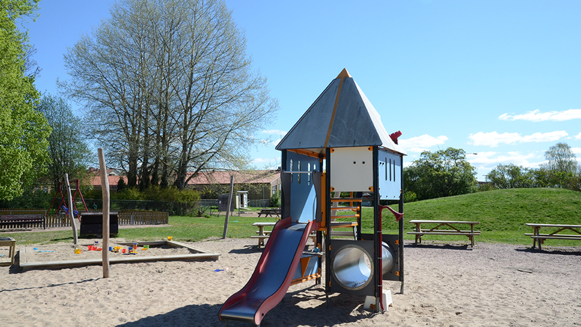Förskolan har två gårdar där barnen kan cykla, gunga, gräva och utforska tillsammans.