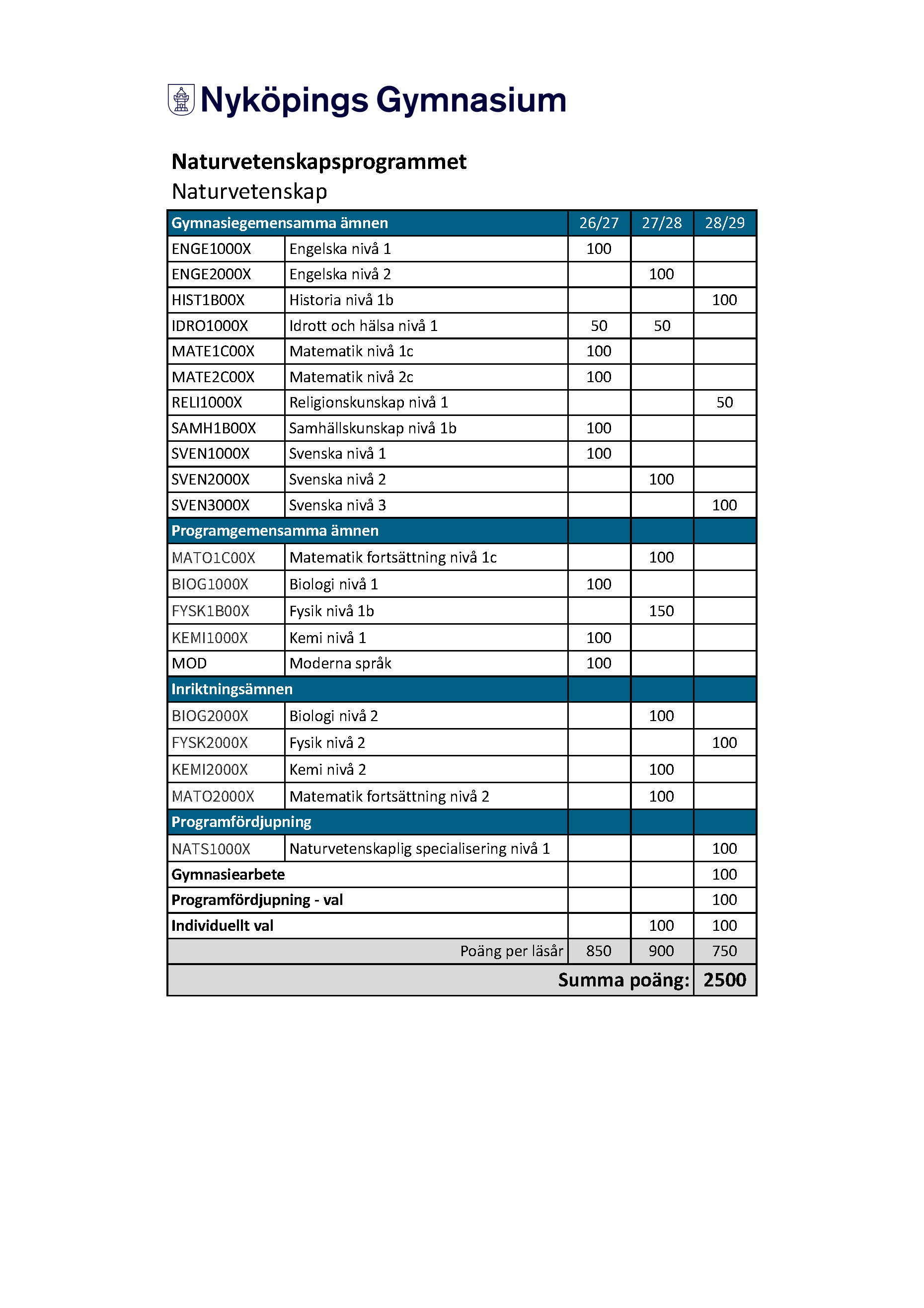 (Motsvarar inriktning Naturvetenskap på Mitt Gymnasieval)