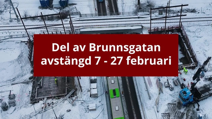 Del av Brunnsgatan stängs av under cirka två veckor sommaren 2026. Detta för att Trafikverket ska riva den norra järnvägsbron. - Del av Brunnsgatan avstängd under vecka 44, 2026: